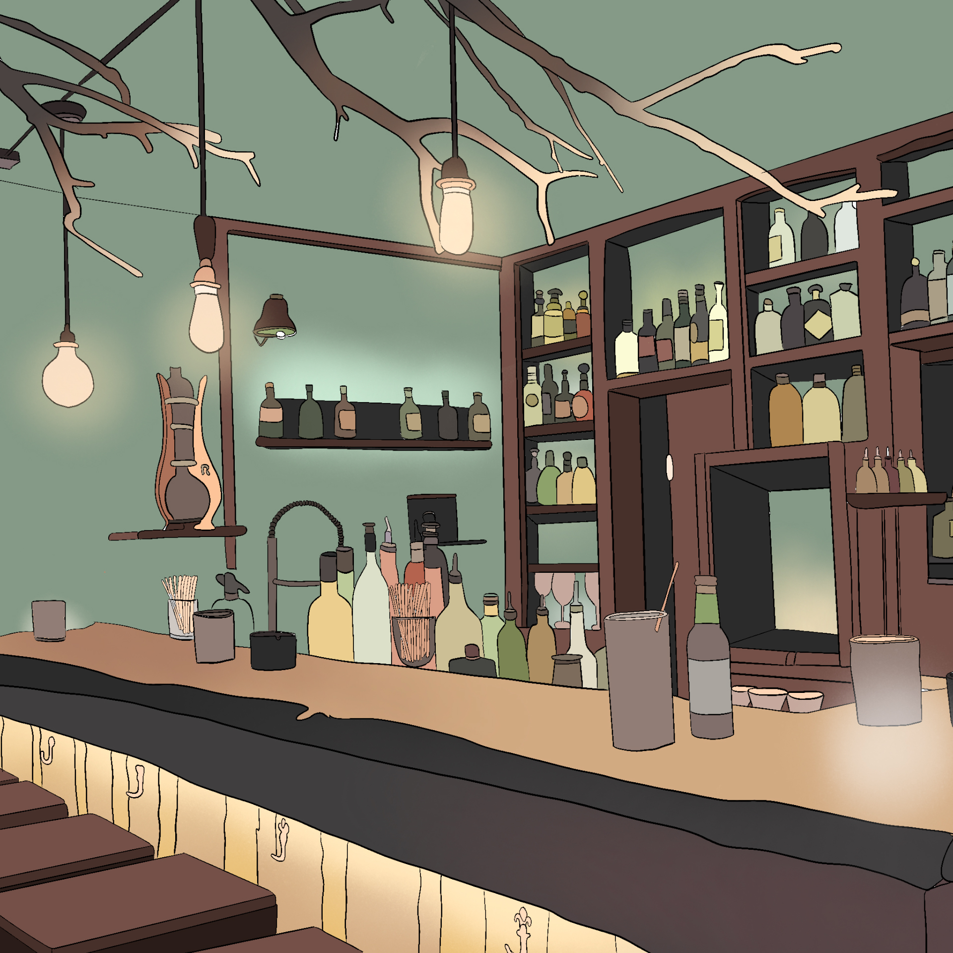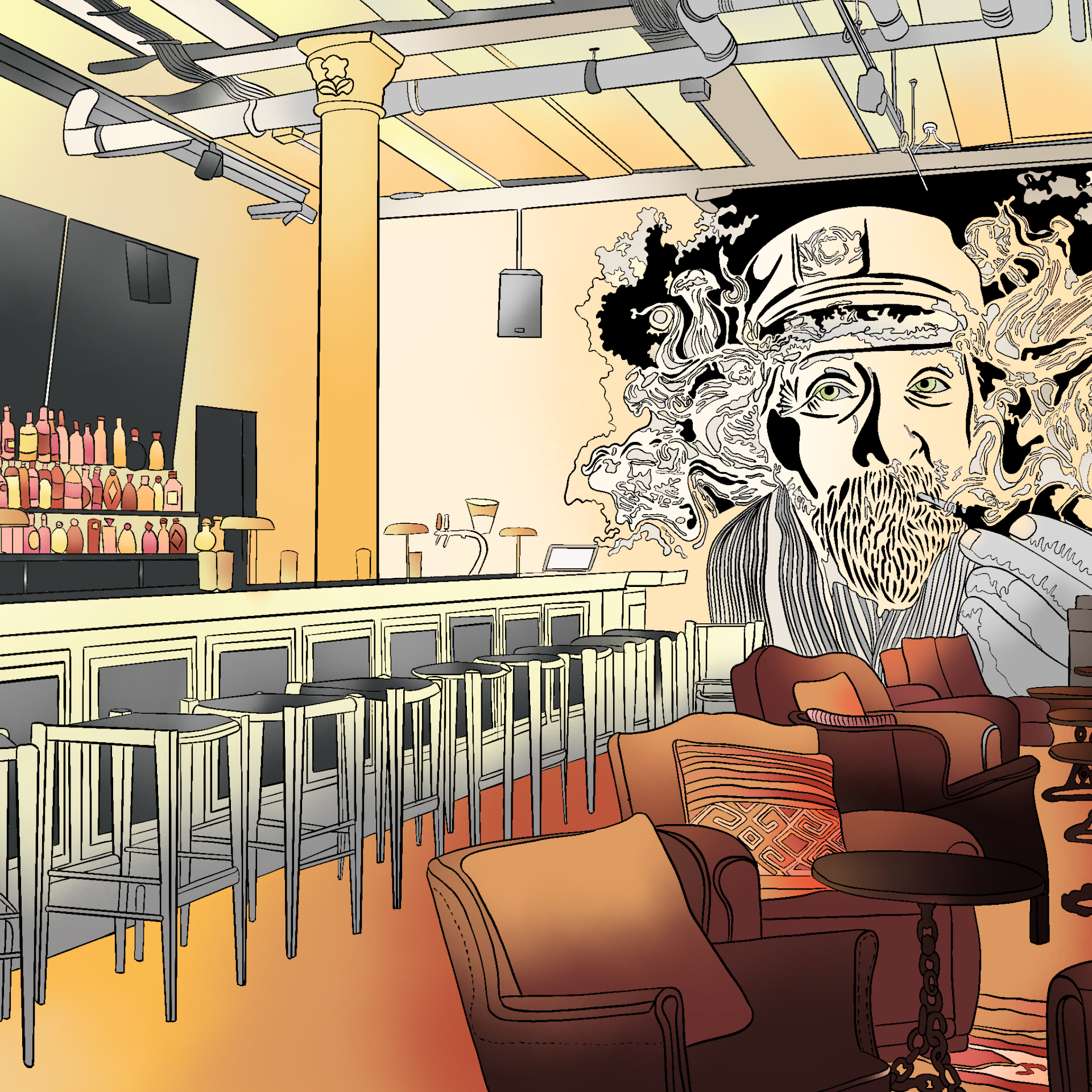 Bar Illustration "The chung club"